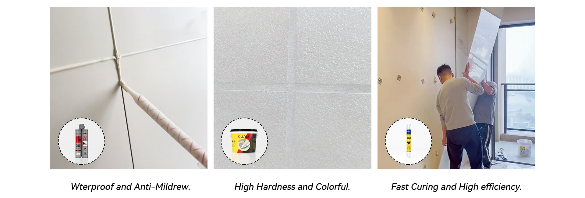 CUALI continue to create value, exceeds expectations with innovative technology for partners and product users. Adhering to the group's consistent product concept and leading technology, CUALI is the first in the industry to promote Epoxy Resin Sealant and water-based epoxy color sand caulking agent with long service life instead of traditional glass glue, according to the global trend of ceramic tile to develop Polyurea Adhesive, leading the industry trend of innovative products.